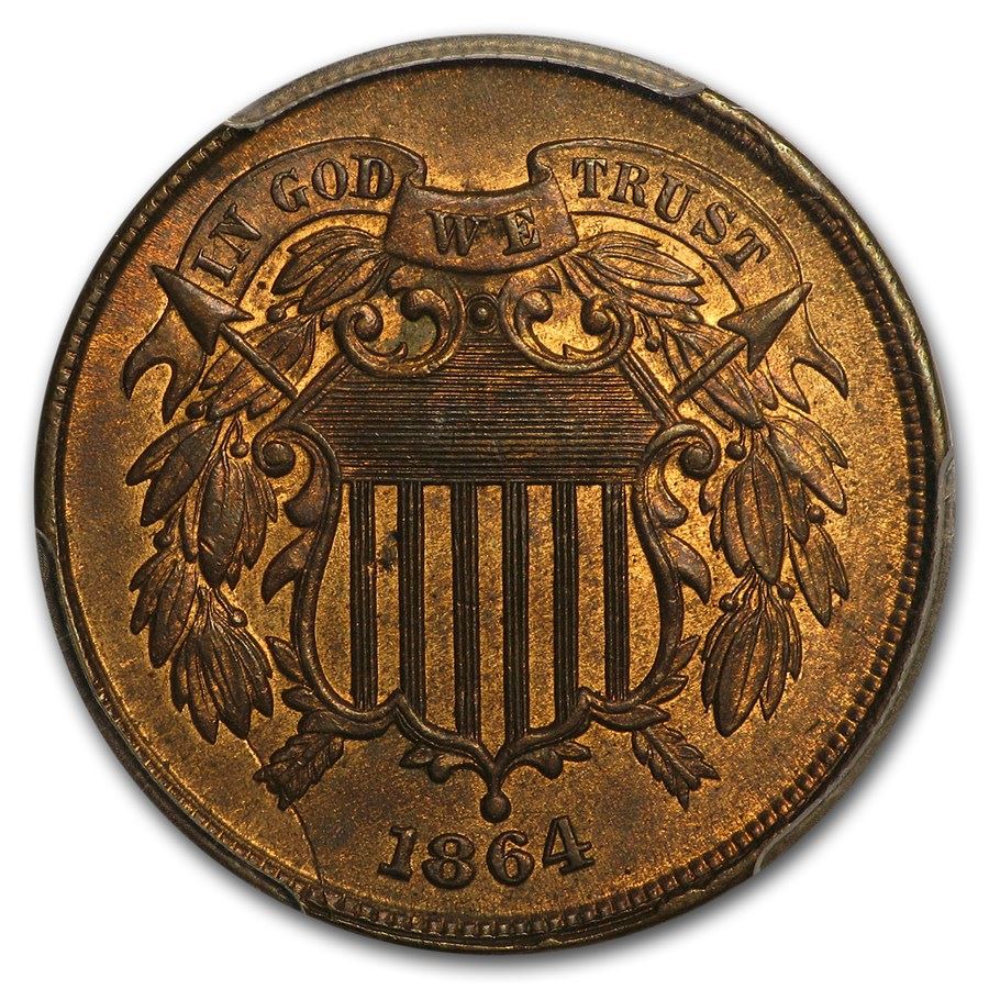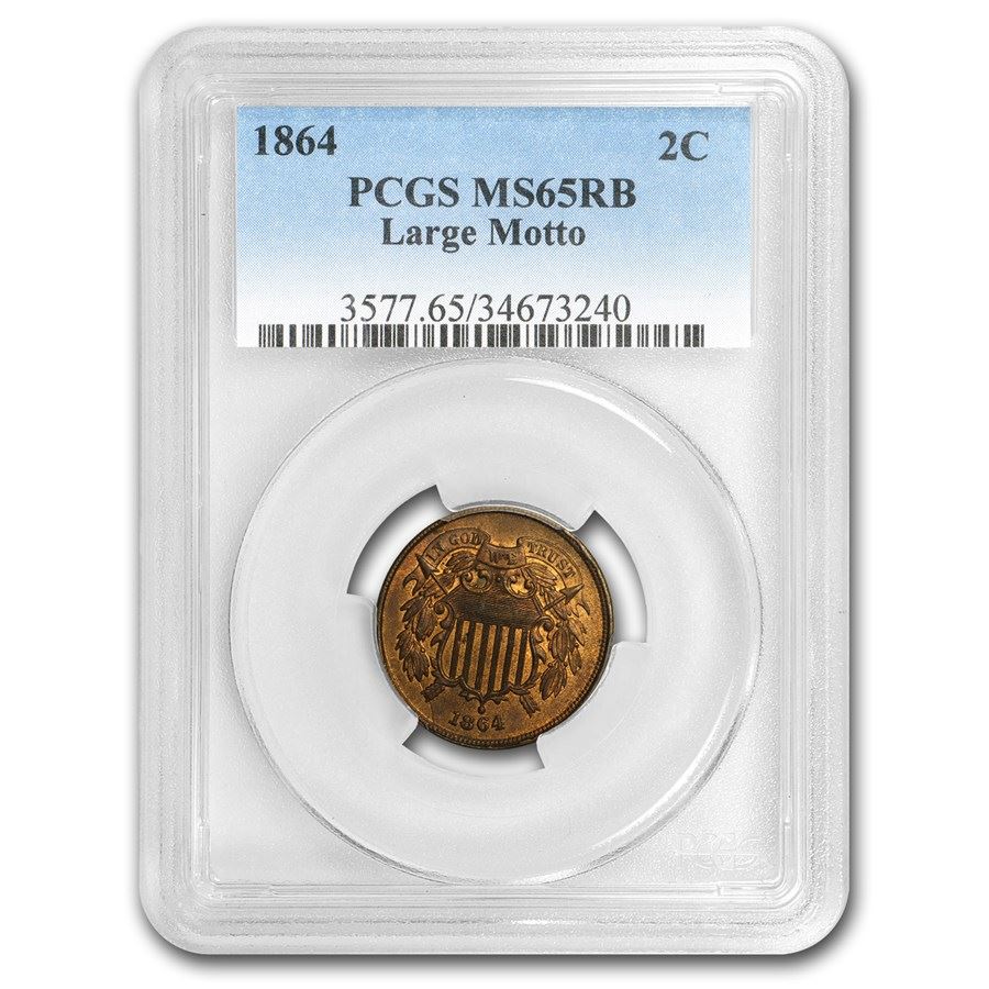 1864 Two Cent Piece Large Motto MS-65 PCGS (Red/Brown)
