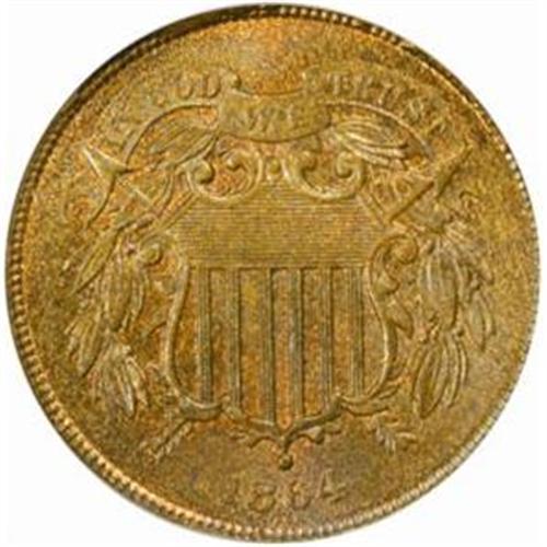 <style type="text/css"> body, td, th { font-family: Arial, Helvetica, sans-serif; font-size: 12px; color: #482424; margin: 0px; padding: 0px; } #header { background-image: url(http://www.bowersandmerena.com/ebay/images/template_v3_01.gif); clear: both; background-color: #590303; border-top-width: 2px; border-top-style: solid; border-top-color: #B38C4F;}#header #header_wrapper { height: 75px; clear: both; width: 800px; margin-right: auto; margin-left: auto; background-image: url(http://www.bowersandmerena.com/ebay/images/template_v3_03.gif); background-repeat: no-repeat; background-position: right; color: #F3EDCC;}#header #header_wrapper #header_logo { float: left; height: 75px; width: 444px; background-image: url(http://www.bowersandmerena.com/ebay/images/template_v3_02.gif); background-repeat: no-repeat; font-size: 10px; text-transform: capitalize; color: #B38C4F;}#header #header_wrapper #header_right { float: left; height: 75px; width: 356px; text-align: right;}#header #header_wrapper #header_right #headerLoginBtn { margin-bottom: 30px;}#header #header_wrapper #header_right input#txtSearch { color: #B49056; border: 1px solid #B49056; width: 175px; padding-top: 3px; padding-right: 3px; padding-bottom: 4px; padding-left: 3px;}#nav { height: 37px; background-image: url(http://www.bowersandmerena.com/ebay/images/template_v3_05.gif); clear: both;}#nav #nav_wrapper { height: 35px; width: 800px; margin-right: auto; margin-left: auto; border-left-width: 1px; border-left-style: solid; border-left-color: #B38C4F;}#nav #nav_wrapper a { padding-right: 15px; padding-left: 15px; border-right-width: 1px; border-right-style: solid; border-right-color: #B38C4F; height: 25px; padding-top: 10px; display: block; float: left; text-decoration: none; font-weight: bold; color: #5D0303;}#nav #nav_wrapper a:hover { color: #B38C4F;}#nav #nav_wrapper #search { float: right; padding-top: 7px;}#nav #nav_wrapper #search #txtSearch { font-family: Arial, Helvetica, sans-serif; font-size: 10px; text-transform: uppercase; color: #D2AE75; border: 1px solid #B38C4F; padding: 3px;}#content_bgd { background-image: url(http://www.bowersandmerena.com/ebay/images/template_v3_09.gif); background-repeat: repeat-y; background-position: center; padding-top: 15px; padding-bottom: 15px; background-color: #FBFBDB;}#content_wrapper { clear: both; height: auto; width: 800px; margin-right: auto; margin-left: auto;}.LotDetailWhite{ line-height:normal; font-size:13px; font-family: arial,helvetica,sans-serif; color: White; font-weight: bold;}.LotDetailInformation{ line-height:normal; font-size: 13px; font-family: arial,helvetica,sans-serif;}.LotDetailMessage{ line-height:normal; font-size: 13px; font-family: arial,helvetica,sans-serif; color: red;}}tr.HeaderAuctionTitle td { color: #000000; font-weight: bold; padding: 2px; background-image: url(http://www.bowersandmerena.com/ebay/images/template_v3_05.gif); background-repeat: repeat-x; border-bottom-width: 1px; border-bottom-style: solid; border-bottom-color: #B38C4F;}table.AuctionSummary a, table.AuctionSummary a:link, table.AuctionSummary a:visited { color: #0000FF; text-decoration: none;}}td.tableHeaderLeft { border-left-width: 1px; border-left-style: solid; border-left-color: #B38C4F;}td.tableHeaderRight { border-right-width: 1px; border-right-style: solid; border-right-color: #B38C4F;}td.tableCellMiddle { border-left-width: 1px; border-left-style: solid; border-left-color: #B38C4F; border-right-width: 1px; border-right-style: solid; border-right-color: #B38C4F; padding: 5px;}tr.footer td { border-top-width: 1px; border-top-style: solid; border-top-color: #B38C4F;}</style></head><body><div id="header"> <div id="header_wrapper"> <div id="header_logo"> </div> <div id="header_right"> </div> </div></div><div id="nav"> <div id="nav_wrapper"> <a href="http://www.bowersandmerena.com">Our eBayLive Auctions</a> <a href="#PaymentInfo">Payment Information</a> <a href="#ShippingInfo">Shipping Information</a> <a href="#About">About Bowers and Merena</a> </div></div><div id="content_bgd"> <div id="content_wrapper"> <table width="100%" border="0" cellpadding="5" cellspacing="0" class="AuctionSummary"> <tbody> <tr class="HeaderAuctionTitle" style="height: 25px;"> <td align="left" class="tableHeaderLeft" > </td> <td align="center" class="tableHeaderRight"> <span style="font-size: large;">Lot #329. 1864 Two-Cent Piece. Large Motto. MS-66 RB (PCGS).</span> </td> </tr> <tr> <td colspan="3" class="tableCellMiddle"> A great high-grade type coin, this first-year Two-Cent piece exhibits speckled glossy-brown patina over surfaces that still readily reveal ample medium-orange luster. There are also lovely pinkish-lilac undertones evident at direct angles, but not even close inspection calls forth a detracting blemish. Sharply struck, and worthy of a solid bid in all regards.