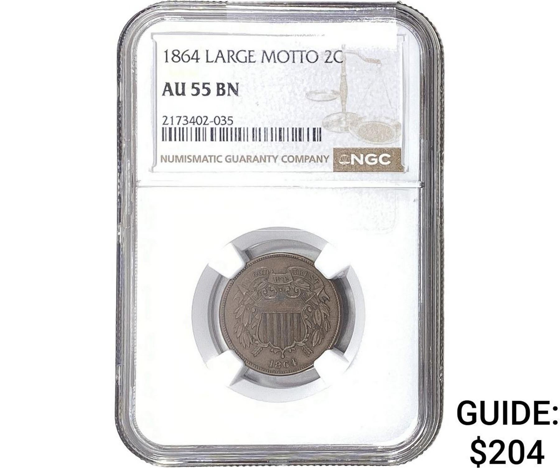 1864 Two Cent Piece NGC AU55 BN Large Motto