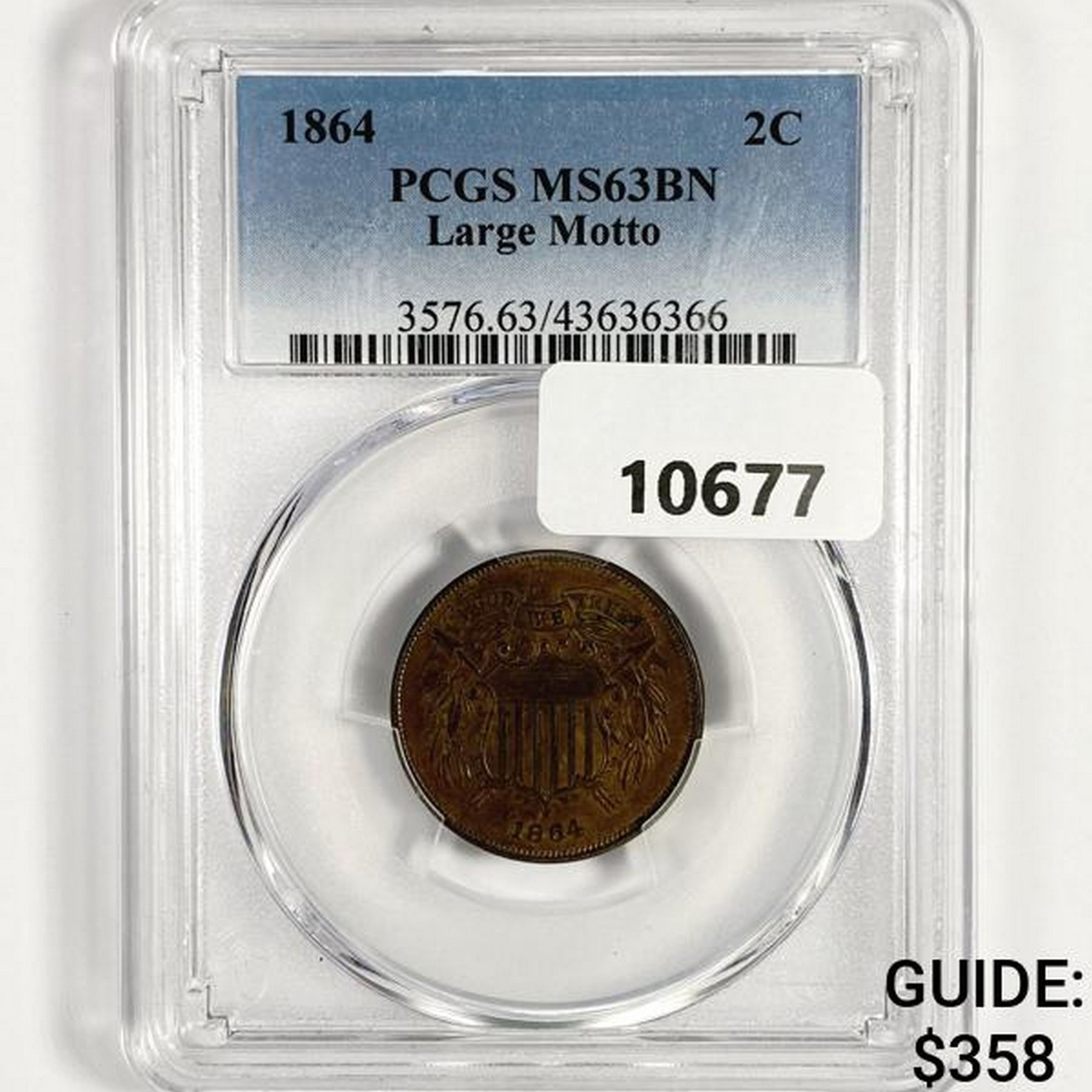 1864 Two Cent Piece PCGS-MS63 BN, Lg Motto