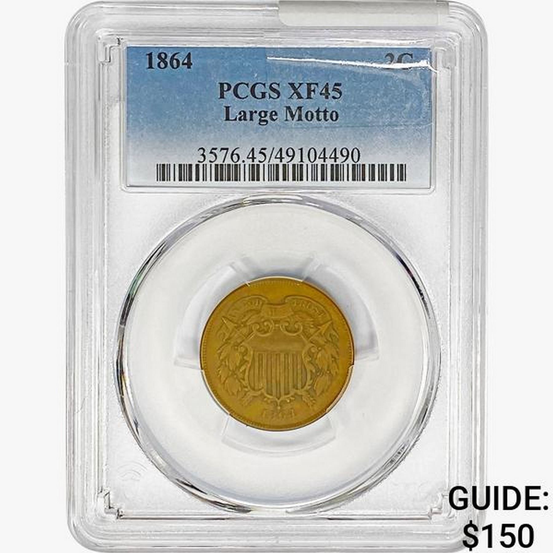 1864 Two Cent Piece PCGS XF45 Large Motto