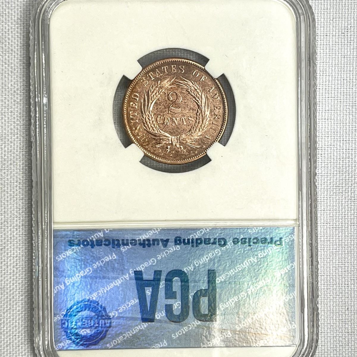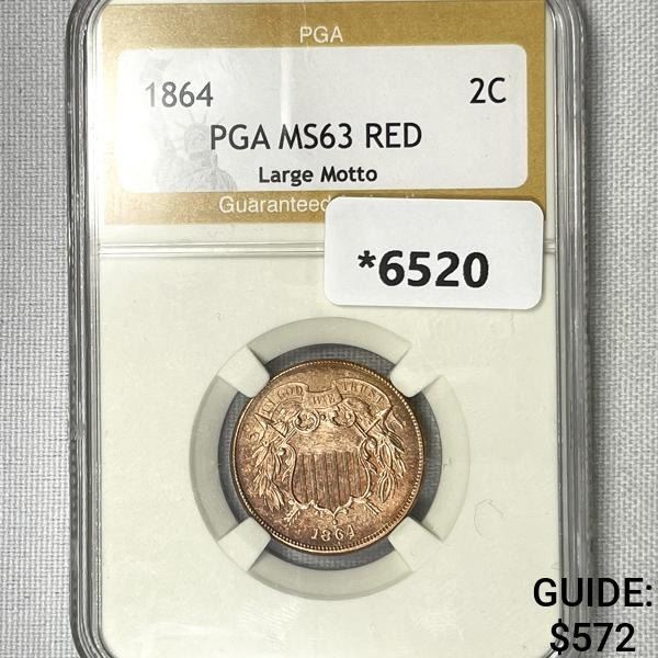 1864 Two Cent Piece PGA-MS63 RED, Lg Motto