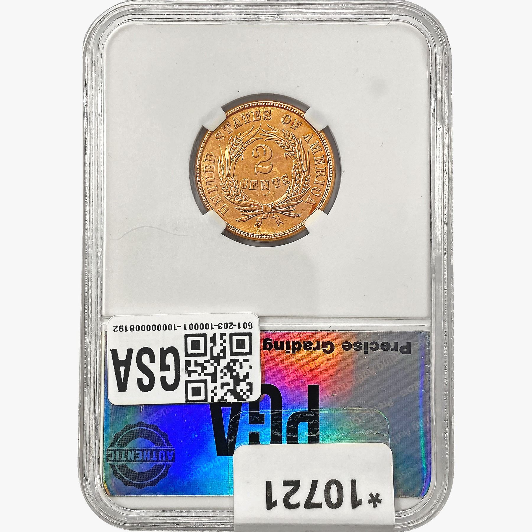 1864 Two Cent Piece PGA MS63+ RED Lg. Motto