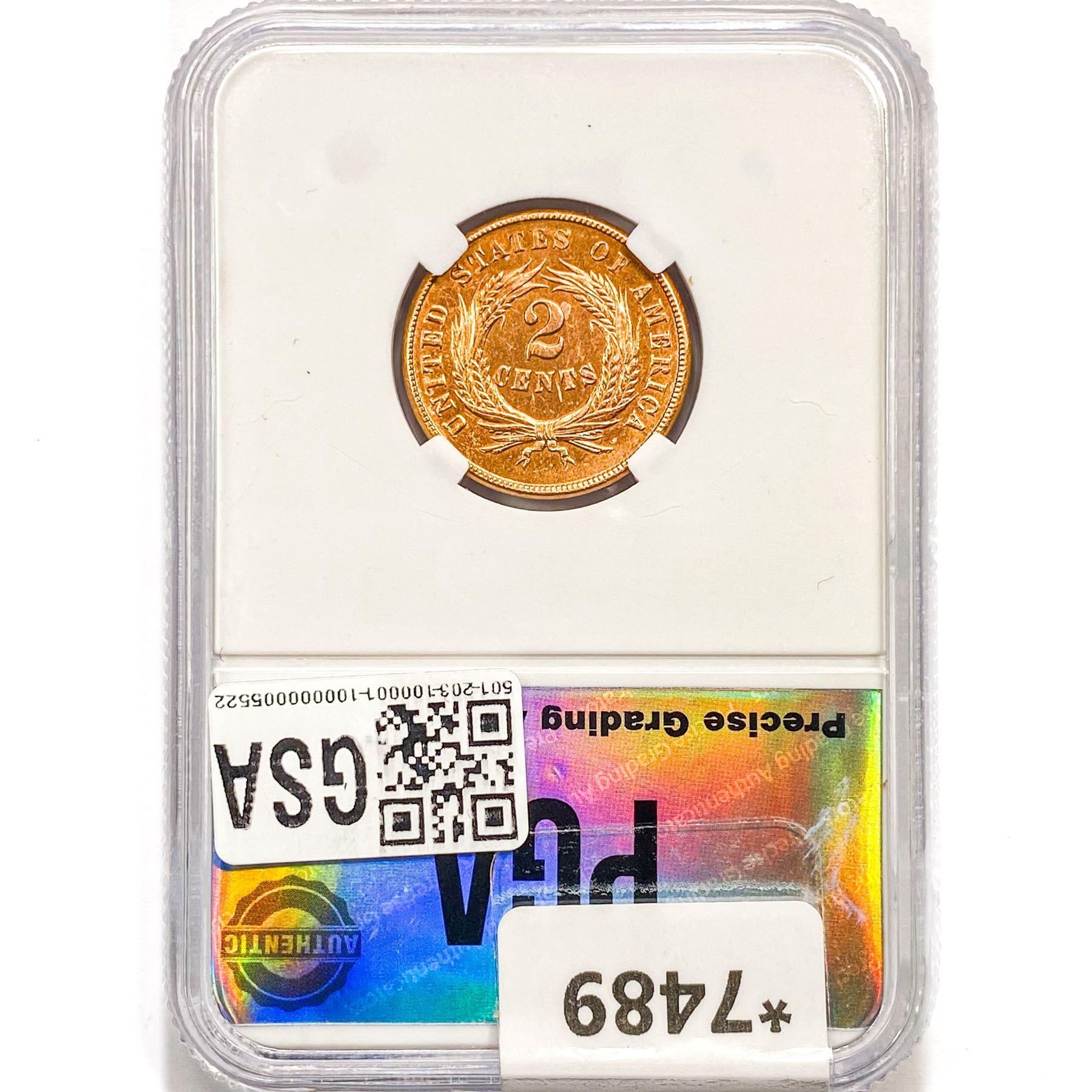 1864 Two Cent Piece PGA MS64 RED