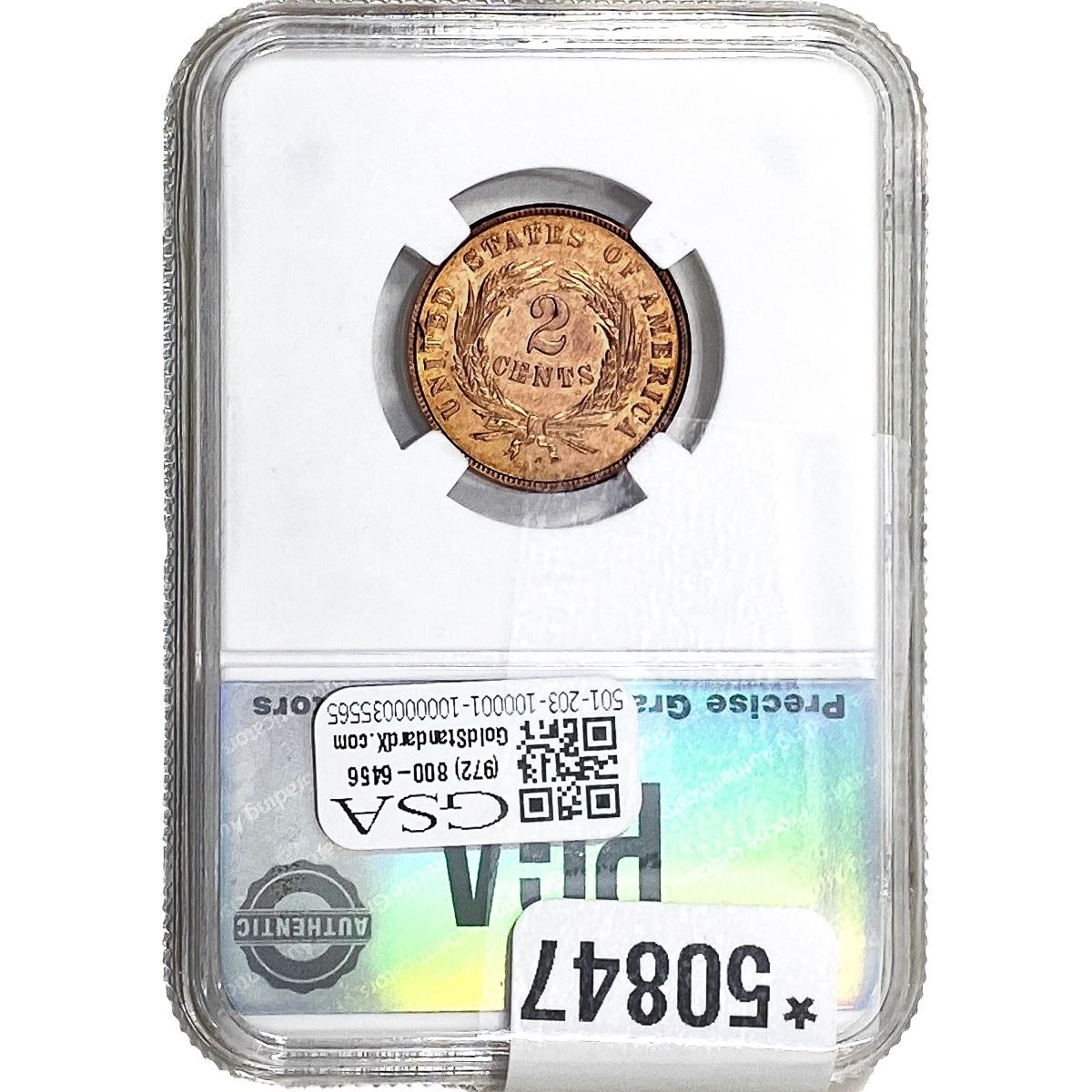 1864 Two Cent Piece PGA MS64 RED
