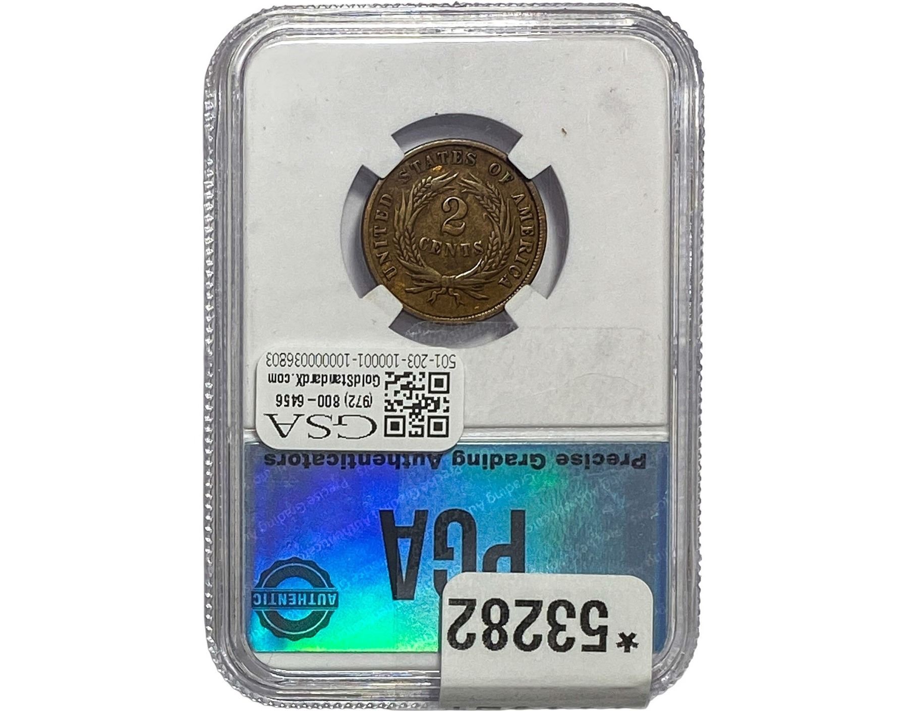 e. Coins sold referencing a third-party grading service are sold “AS IS” without any express or implied warranty, except for a guarantee by GSA that they are genuine. Removal or alteration of the holder, voids all of Bidder’s claims concerning that Product. Certain warranties may be available from the grading services and Bidders are referred to them for further details: Numismatic Guaranty Corporation (NGC), PO Box 4776, Sarasota, FL 34230, www.ngccoin.com/services/writtenguarantee.asp; Professional Coin Grading Services (PCGS), PO Box 9458, Newport Beach, CA 92658, www.pcgs.com/guarantee.html; ANACS, 6555 S. Kenton St., Ste. 303, Englewood, CO 80111; and Independent Coin Grading Co. (ICG), 7901 East Bellview, Ave., Suite 50, Englewood, CO 80111.
