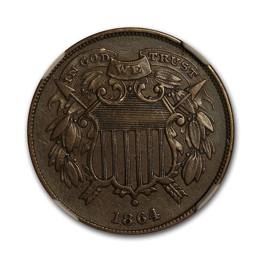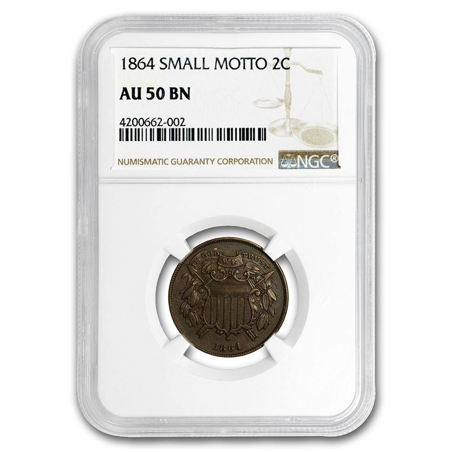 1864 Two Cent Piece Small Motto AU-50 NGC