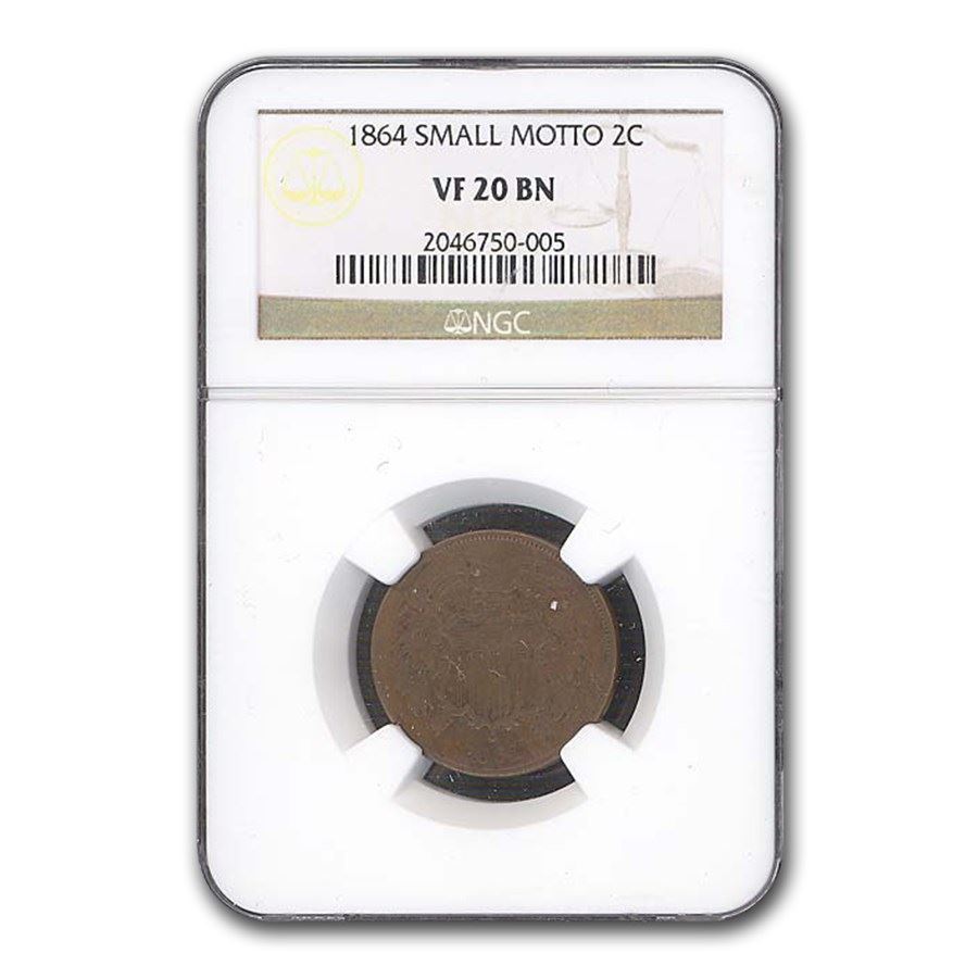 1864 Two Cent Piece VF-20 NGC (Brown, Small Motto)