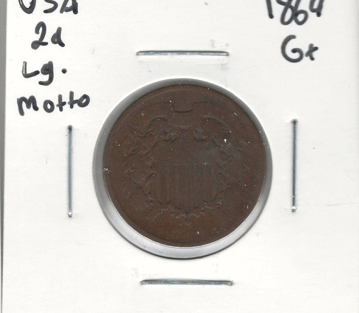 1864 USA 2 Cent Large Motto G+