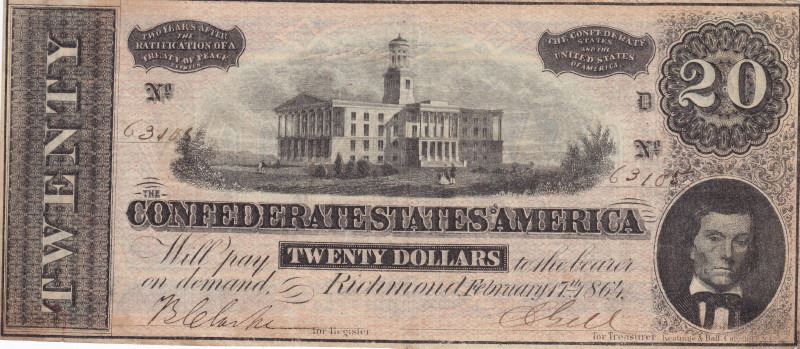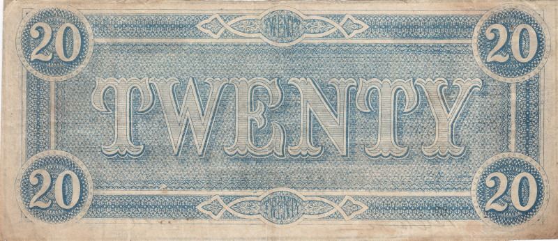 1864 Confederate United States $20 Note - PF-1, CR 504-R1, Type 67 - VF+ Condition