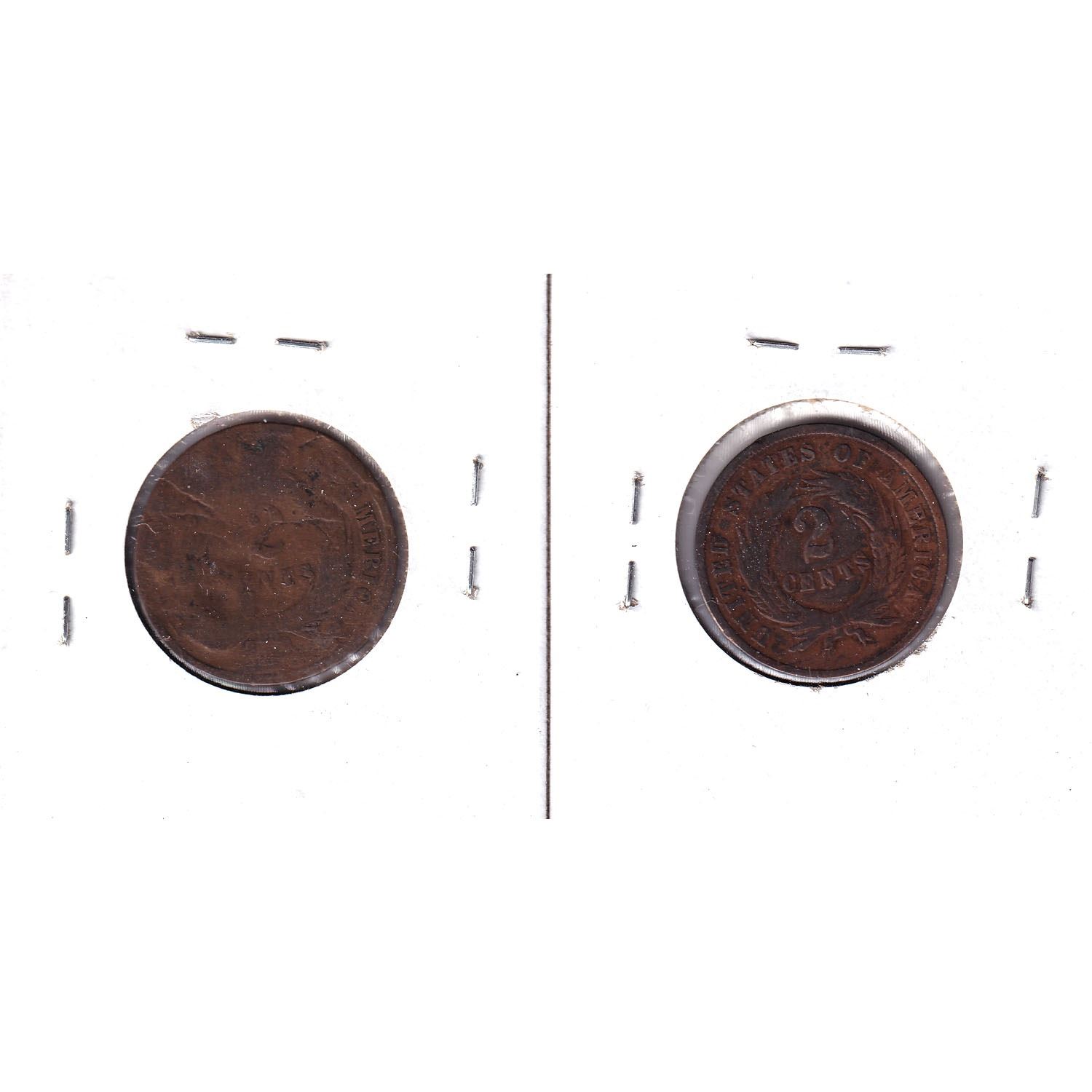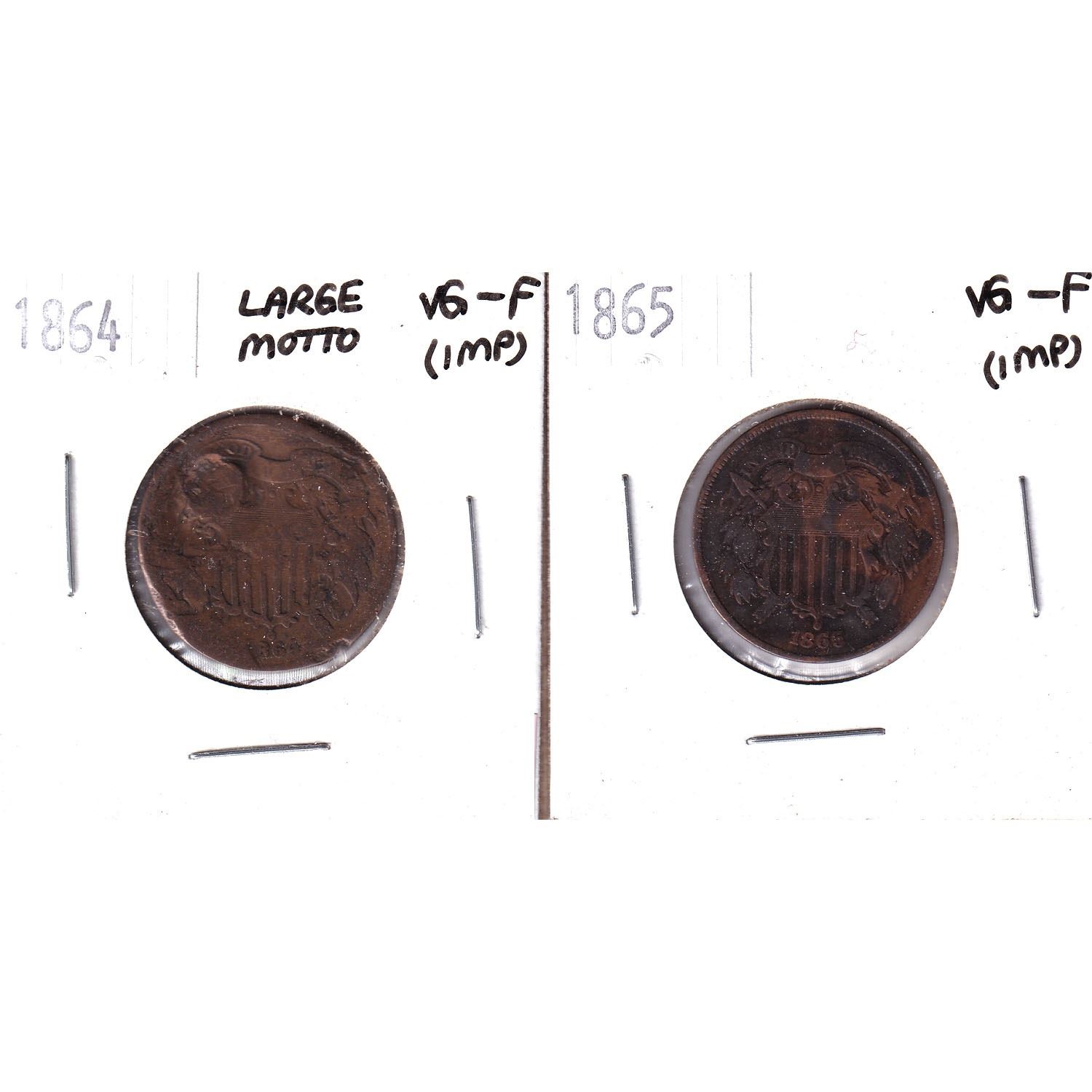 1864 USA Large Motto 2-cent VG-F (impaired) & 1865 USA 2-cent VG-Fine (Impaired) 2pcs
