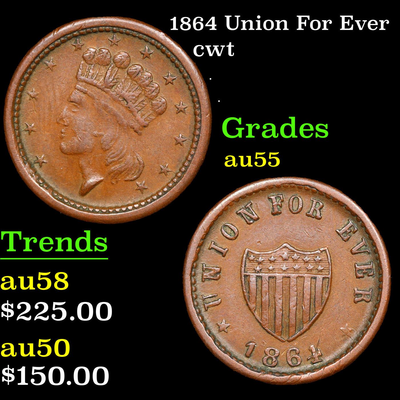 1864 Union For Ever Civil War Token 1c Grades Choice AU.