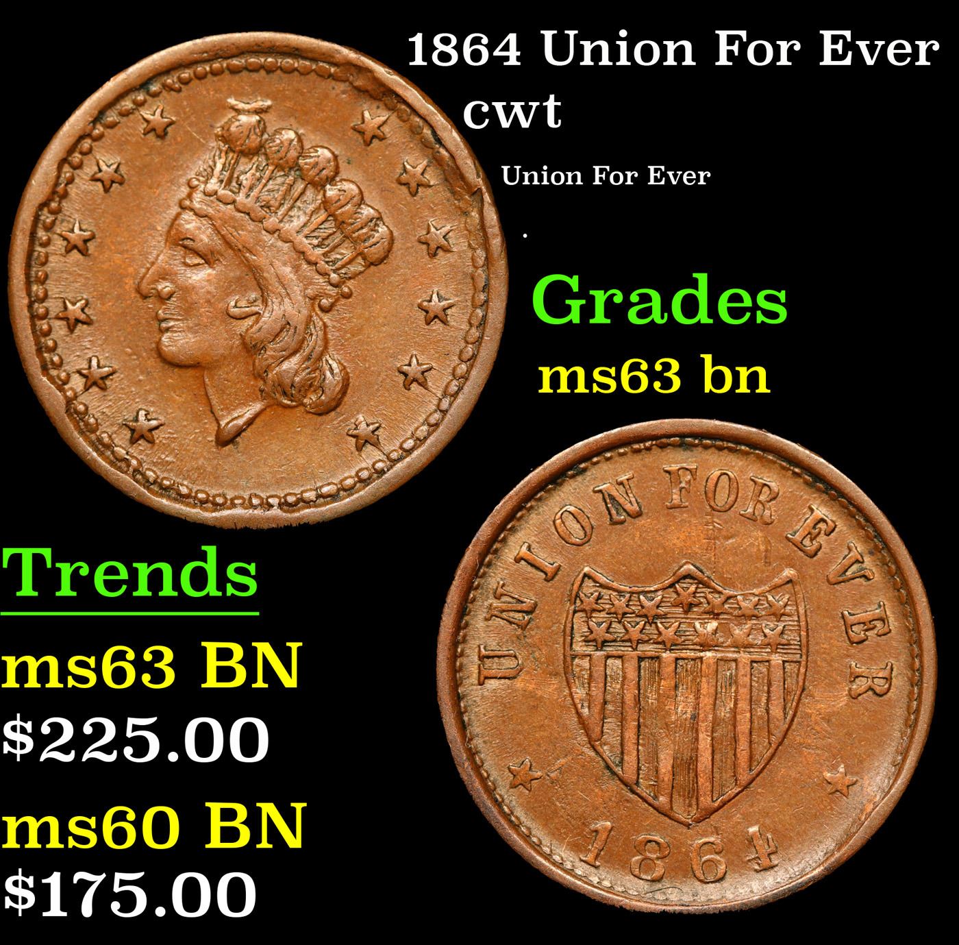 1864 Union For Ever Civil War Token 1c Grades Select Unc BN.