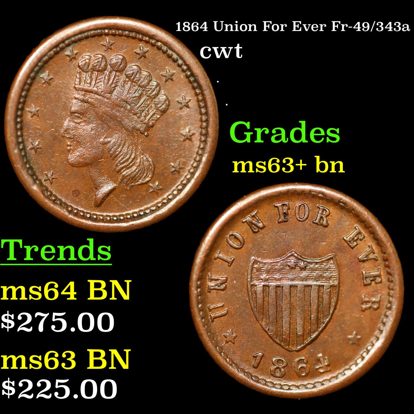 1864 Union For Ever Fr-49/343a Civil War Token 1c Grades Select+ Unc BN.