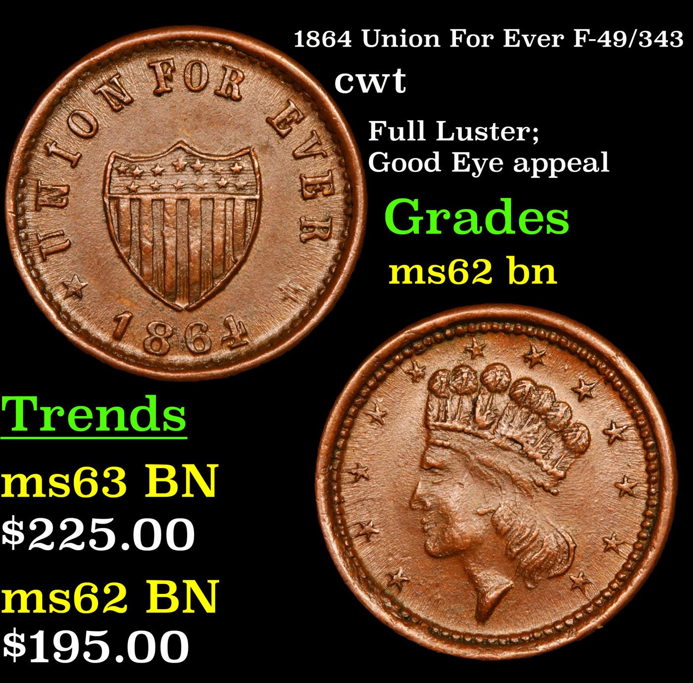 1864 Union For Ever F-49/343 Civil War Token 1c Grades Select Unc BN.