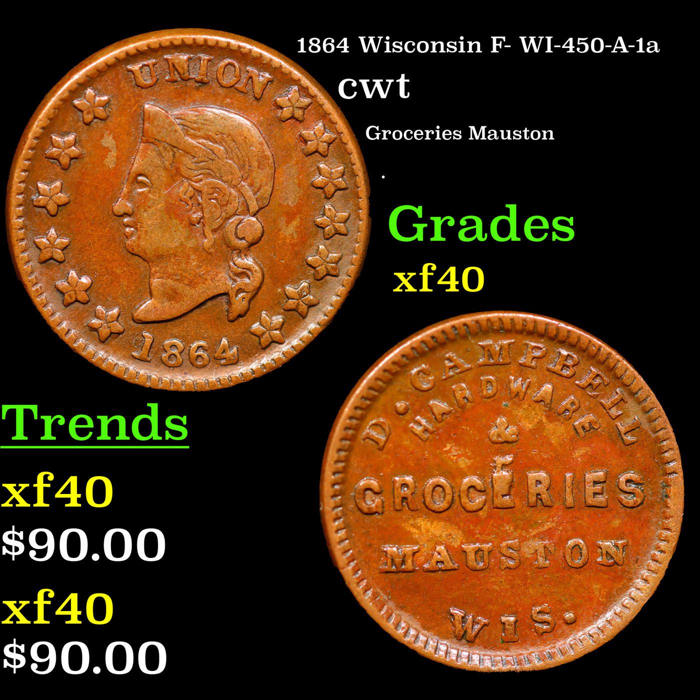 1864 Wisconsin F- WI-450-A-1a Civil War Token 1c Grades xf.
