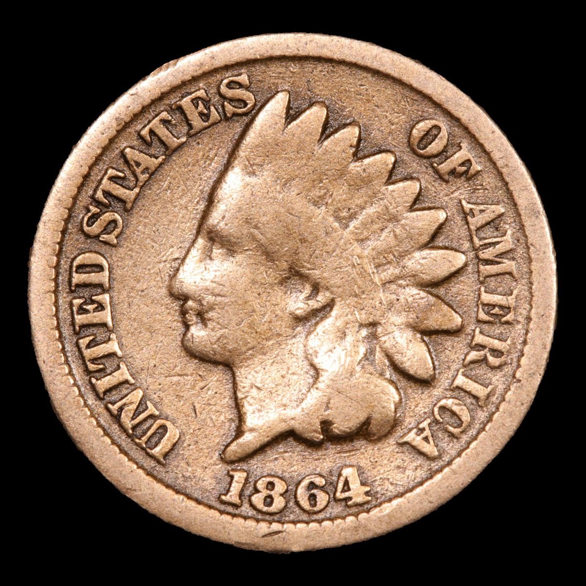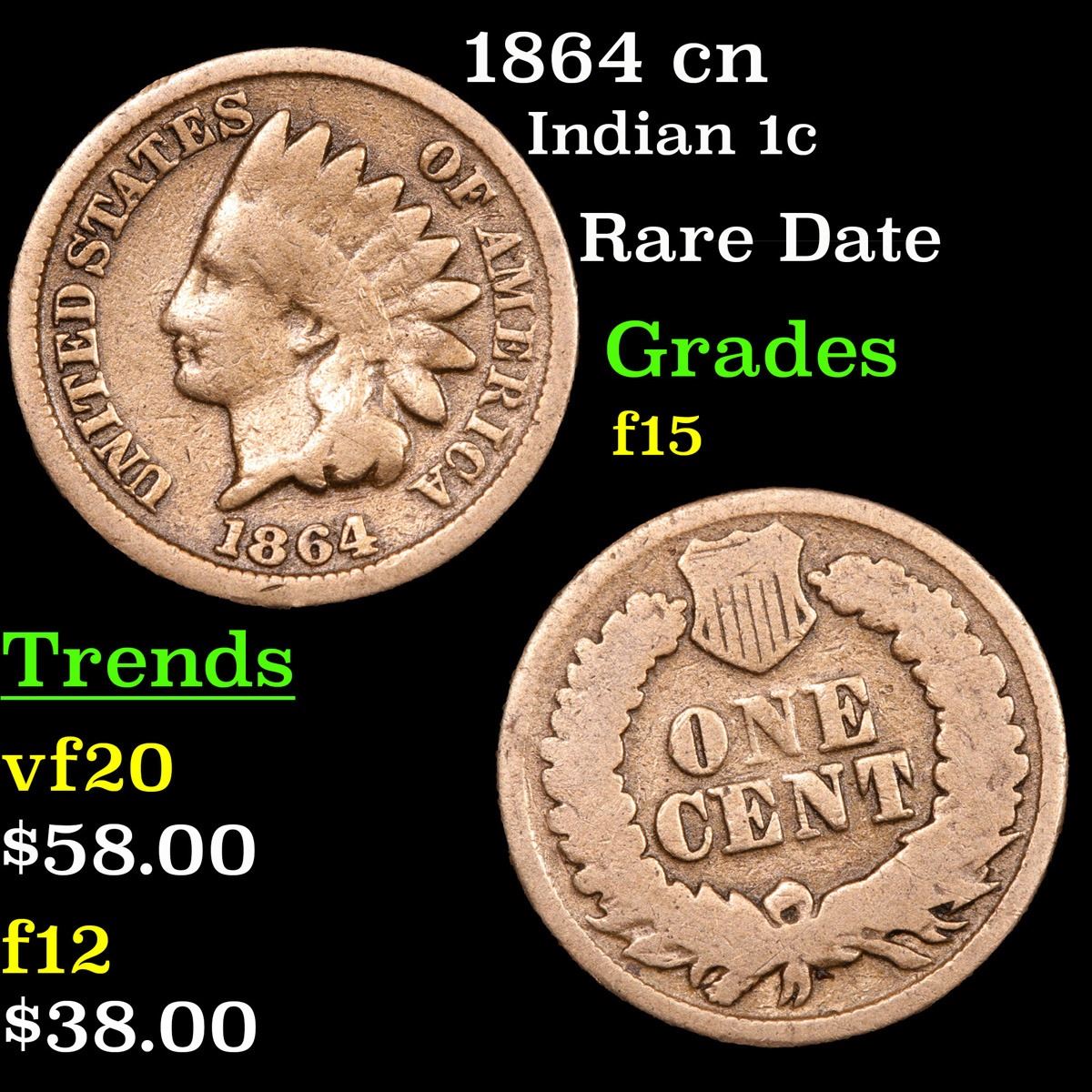 1864 cn Rare Date . Indian Cent 1c Grades f+.