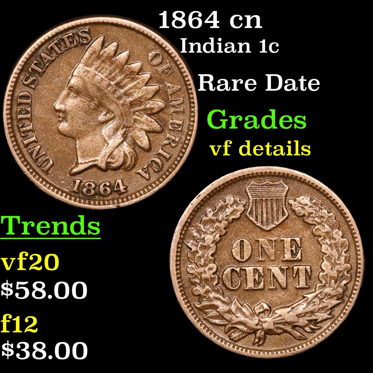 1864 cn Rare Date . Indian Cent 1c Grades vf details.