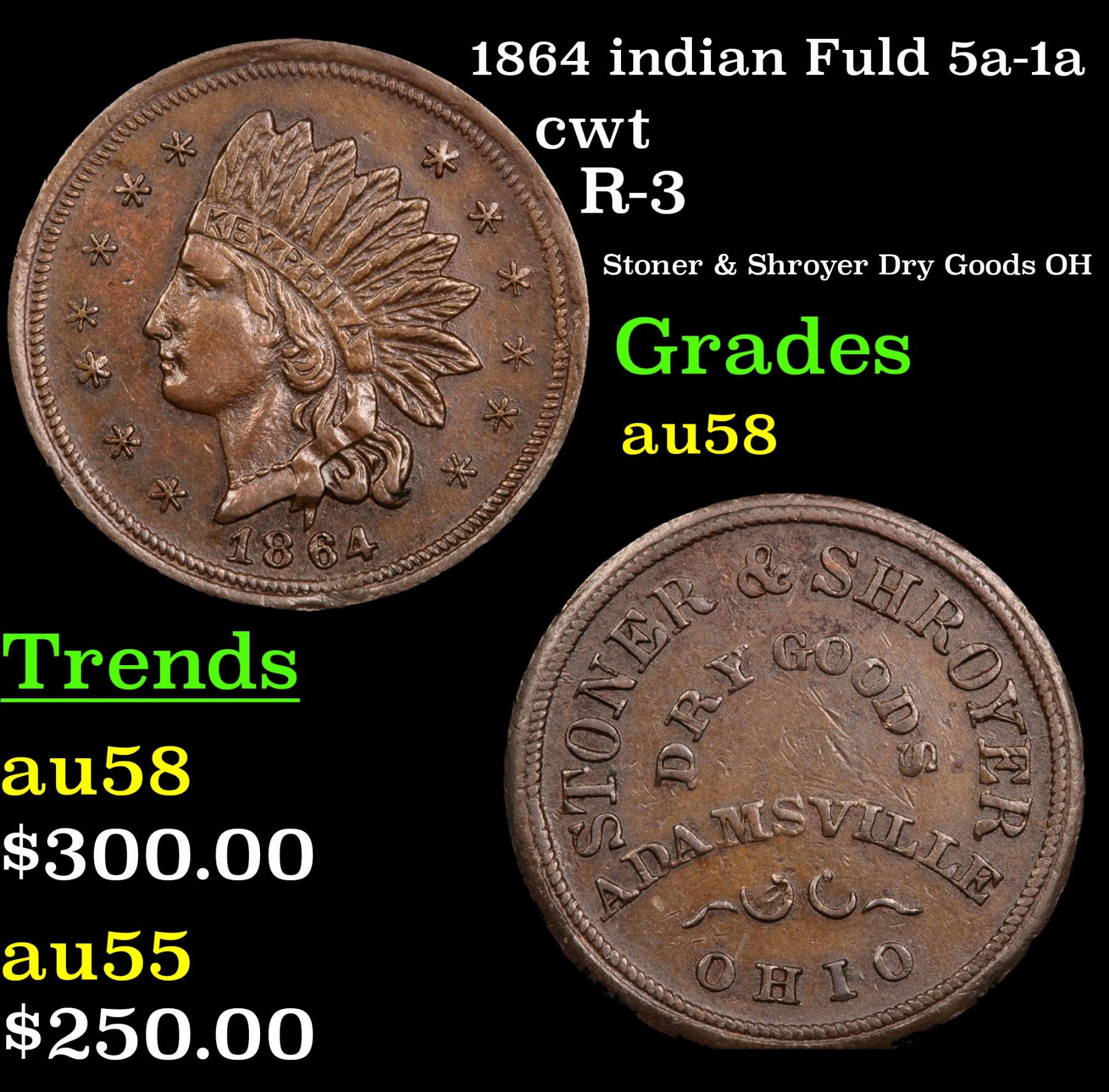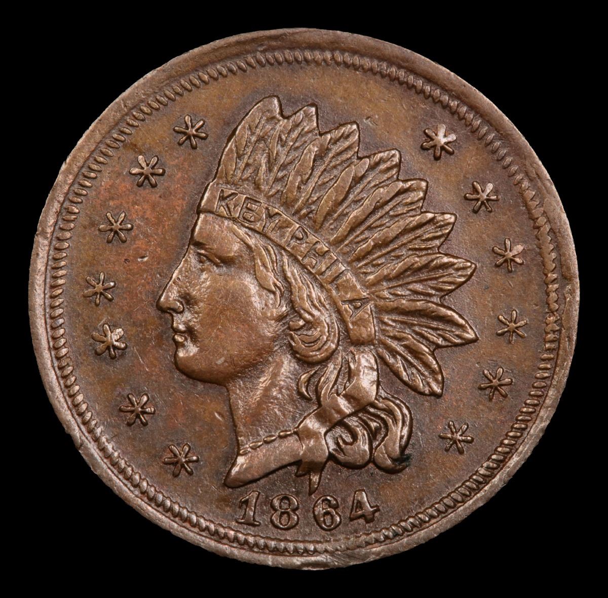 1864 indian Fuld 5a-1a Civil War Token 1c Grades Choice AU/BU Slider.