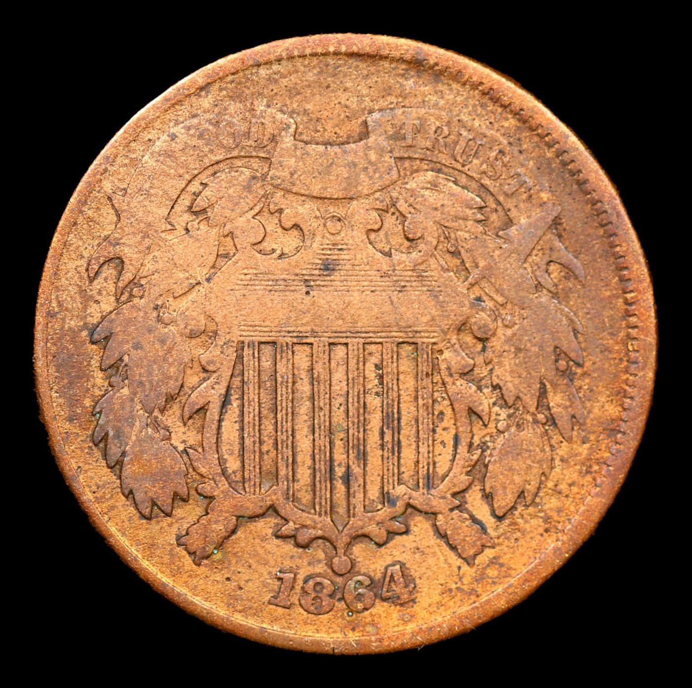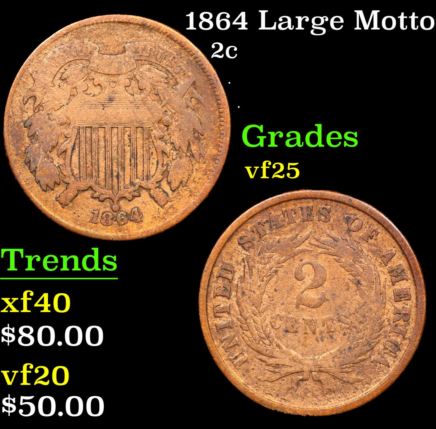 1864 large motto Two Cent Piece 2c Grades vf+.