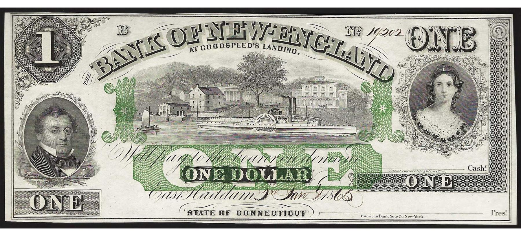 One 1865 $1 Bank of New England Obsolete Bank Note.