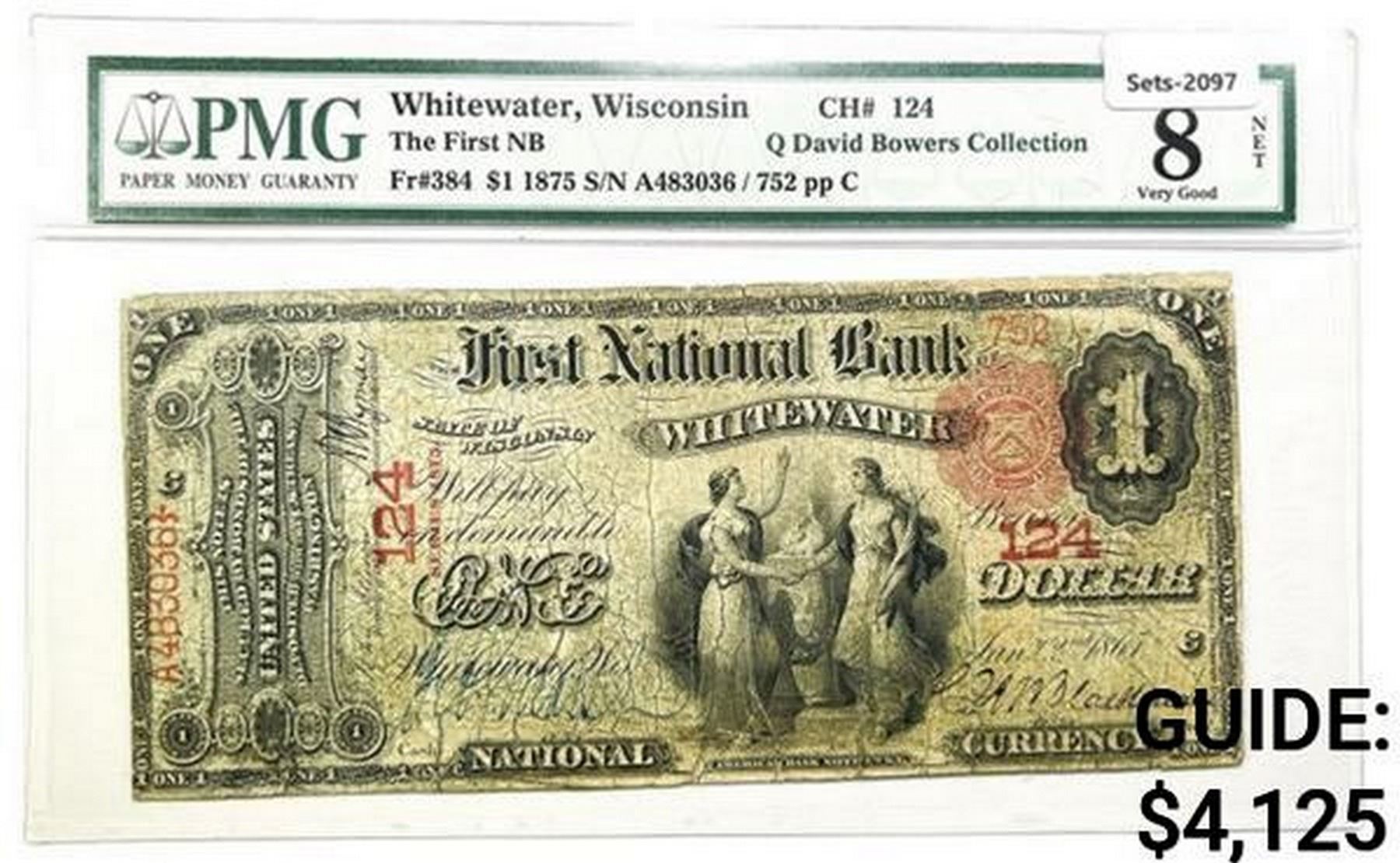 1865 $1 LG Bank Whitewater WI Legal Tender PMG VG8