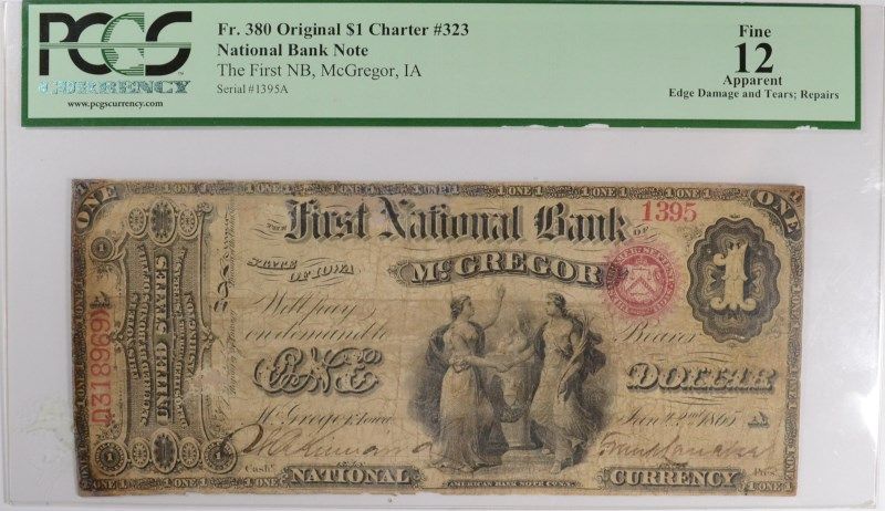 1865 $1 NATIONAL MCGEROR, IA #323 PCGS 12 APPARENT