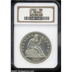 <table><tr><td><TABLE cellSpacing=0 cellPadding=0 width="100%" bgColor=#000000 border=0><TBODY> <TR><TD width="100%"><TABLE cellSpacing=1 cellPadding=3 width="100%" border=0><TBODY><TR><TD width="100%" bgColor=#79735c><FONT face=arial color=#ffffff size=3><B>Description</B> </FONT></TD></TR><TR><TD width="100%" bgColor=#ffffff><FONT face=arial size=2><B>1865 $1 PR63 NGC.</B></I> Aside from the ultra-rare 1866, the 1865 is the final year of issue in the No Motto series. It is also a lower mintage date with only 500 proofs struck. Essentially untoned, the surfaces show a number of hairlines from an old cleaning and a light haziness, but there are only the slightest other post-striking impairments present on either side. Population: 17 in 63, 84 finer (7/03).<BR><I>From the Holman Family Collection.</B></I> </FONT></TD></TR></TBODY></TABLE></TD></TR></TBODY></TABLE><BR><A name=PricesRealized></A><TABLE cellSpacing=0 cellPadding=0 width="100%" bgColor=#000000 border=0><TBODY><TR><TD width="100%"><TABLE cellSpacing=1 cellPadding=3 width="100%" border=0><TBODY><TR><TD width="100%" bgColor=#79735c><A name=PR><FONT face=arial color=#ffffff size=3><B>Previous Prices from Heritage Auctions</B> </FONT></A></TD></TR><TR><TD bgColor=#f6f6ed><TABLE cellSpacing=0 cellPadding=0 width="100%" border=1><TBODY><TR><TD align=middle width="33%"><B>Date</B></TD><TD align=middle width="33%"><B>Service</B></TD><TD align=middle width="33%"><B>Price</B></TD></TR><TR bgColor=whitesmoke><TD width="33%"><B>07/29/2003</B></TD><TD width="33%">NGC</TD><TD width="33%">$2,357.50</TD></TR><TR bgColor=whitesmoke><TD width="33%"><B>04/27/2002</B></TD><TD width="33%">PCGS</TD><TD width="33%">$3,450.00</TD></TR><TR bgColor=whitesmoke><TD width="33%"><B>10/04/1997</B></TD><TD width="33%">PCGS</TD><TD width="33%">$2,090.00</TD></TR><TR bgColor=whitesmoke><TD width="33%"><B>08/19/1995</B></TD><TD width="33%">PCGS</TD><TD width="33%">$2,970.00</TD></TR><TR bgColor=whitesmoke><TD width="33%"><B>08/01/1998</B></TD><TD width="33%">PCGS</TD><TD width="33%">$2,415.00</TD></TR><TR bgColor=whitesmoke><TD width="33%"><B>08/09/2000</B></TD><TD width="33%">PCGS</TD><TD width="33%">$2,185.00</TD></TR></TBODY></TABLE></TD></TR><TR><TD bgColor=#ffffff><FONT face=arial size=1 ?>PLEASE NOTE: All prices realized reflect the final hammer price PLUS the buyer's premium in auctions that charge a buyer's premium. Each item has a notation at the top of the listing indicating whether that lot included a buyer's premium. Example: A item that sells with a final hammer price of $100 and a 20% buyer's premium will display with a price realized of $120. All information listed is intended to be as accurate as possible, but errors are possible. Please use this guide carefully and inform us of any inaccuracies. </FONT></TD></TR></TBODY></TABLE></TD></TR></TBODY></TABLE><BR><TABLE cellSpacing=0 cellPadding=0 width="100%" bgColor=#000000 border=0><TBODY><TR><TD width="100%"><TABLE cellSpacing=1 cellPadding=3 width="100%" border=0><TBODY><TR><TD width="100%" bgColor=#79735c colSpan=6><FONT face=arial color=#ffffff size=3><B>Price Guide*</B> </FONT></TD></TR><TR bgColor=#f6f6ed><TD align=middle><B>Grade</B> </TD><TD align=middle><B>Coin World<BR>(Trends)</B> </TD><TD align=middle><B>Numismedia<BR>Retail</B> </TD><TD align=middle><B>Numismedia<BR>Wholesale</B> </TD><TD align=middle><B>Coin<BR>Universe</B> </TD><TD align=middle><B>Heritage<BR>Value Index</B> </TD></TR><TR bgColor=#ffffff><TD align=middle>62</TD><TD align=right>---</TD><TD align=right>---</TD><TD align=right>$2,050.00</TD><TD align=right>---</TD><TD align=right>$1,849.58</TD></TR><TR style="FONT-WEIGHT: bold" bgColor=#cccfdd><TD align=middle>63</TD><TD align=right>---</TD><TD align=right>---</TD><TD align=right>$2,750.00</TD><TD align=right>$3,400.00</TD><TD align=right>$2,414.17</TD></TR><TR bgColor=#ffffff><TD align=middle>64</TD><TD align=right>---</TD><TD align=right>---</TD><TD align=right>$4,825.00</TD><TD align=right>$6,500.00</TD><TD align=right>$4,345.00</TD></TR><TR bgColor=#ffffff><TD colSpan=6><FONT size=1>*All information listed is intended to be as accurate as possible, but errors are possible. No item may be returned or refused based on this information which is provided as a service to our customers. You should contact each pricing source directly to determine the accuracy of this information. </FONT></TD></TR></TBODY></TABLE></TD></TR></TBODY></TABLE><BR><TABLE cellSpacing=0 cellPadding=0 width="100%" bgColor=#000000 border=0><TBODY><TR><TD width="100%"><TABLE cellSpacing=1 cellPadding=3 width="100%" border=0><TBODY><TR><TD width="100%" bgColor=#79735c><FONT face=arial color=#ffffff size=3><B>Population Guide</B> </FONT></TD></TR><TR bgColor=#ffffff><TD align=middle><!-- Begin Output of Population Grid--><TABLE cellSpacing=0 cellPadding=0 width="100%" border=0><TBODY><TR><TD vAlign=center><TABLE cellSpacing=0 width="100%" border=1 cellsadding="3"><TBODY><TR><TD vAlign=center><TABLE cellSpacing=0 cellPadding=3 width="100%" border=1><TBODY><TR><TD vAlign=center align=middle bgColor=#f0f1e8 colSpan=2 <CENTER><FONT face=Arial size=2><B>PCGS Pop </B></FONT><CENTER></CENTER></TD><TD vAlign=center align=middle bgColor=#f0f1e8 colSpan=2><CENTER><FONT face=Arial size=2><B>NGC Pop</B></CENTER></FONT></TD></TR><TR><TD vAlign=center><FONT face=Arial size=2>(63)</FONT> </TD><TD vAlign=center align=right><FONT face=Arial size=2>47</FONT> </TD><TD vAlign=center><FONT face=Arial size=2>(63)</FONT> </TD><TD vAlign=center align=right><FONT face=Arial size=2>17</FONT> </TD></TR><TR><TD vAlign=center><FONT face=Arial size=2>(>63)</FONT> </TD><TD vAlign=center align=right><FONT face=Arial size=2>70</FONT> </TD><TD vAlign=center><FONT face=Arial size=2>(>63)</FONT> </TD><TD vAlign=center align=right><FONT face=Arial size=2>84</FONT> </TD></TR></TBODY></TABLE></TD></TR></TBODY></TABLE></TD></TR></TBODY></TABLE><!-- End Output of Population Grid--></TD></TR></TBODY></TABLE></TD></TR></TBODY></TABLE><BR><TAB