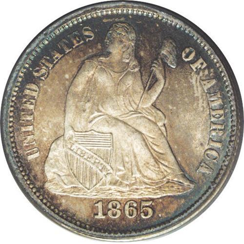 1865 10C MS66 PCGS. The 1865 dime, with a business str 1865[10C] MS66 PCGS.