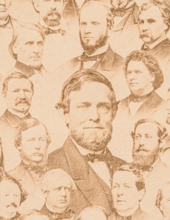1865 Photomontage Showing President Lincoln with Congressional Supporters of the Proposed Anti-Slavery Constitutional Amendment