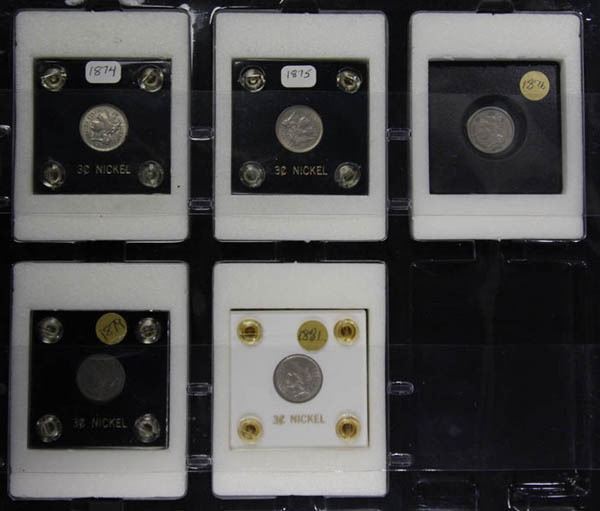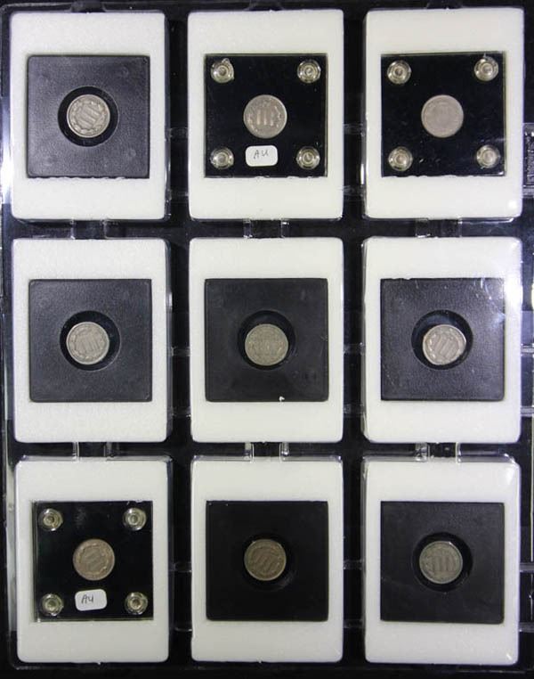 1865/1881, small Collection. Comprised of 14 pieces in total: by grade VG: 1867, 1868, 1870; Fine: 1869, 1871, 1876; VF: 1879; AU: 1866, 1873, 1874, 1875, 1881; EF jewelry loop removed 1872; EF environmental damage 1865. Original holding.