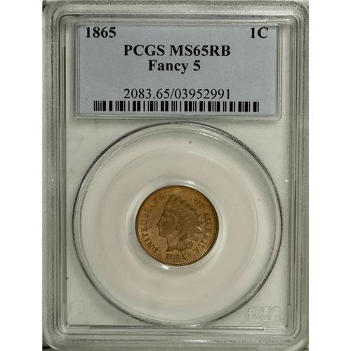 1865 1C Fancy 5 MS65 Red and Brown PCGS. PCGS Popu