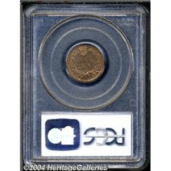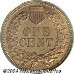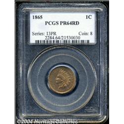 <B>1865<1C> PR64 Red PCGS.</B></I> Plain 5. Fully struck with lovely mint-red color, a couple of tiny planchet flaws (as struck) on the obverse, and a few scattered flyspecks on the upper reverse. The early Bronze proof issues are noticeably scarcer than the comparatively high mintage dates from later in the series. Population: 16 in 64, 10 finer (7/04). <BR><BR><B>Important notice:</B> Heritage usually auctions material at the rate of 200-250 lots per hour. On some occasions eBay Live bid software or the Internet may not be able to keep up with the pace of the auction. We recommend placing a realistic absentee bid now as insurance to avoid disappointment. Occasionally the auctioneer may eliminate or reject an eBay Live bid, and the auctioneer may also reopen a lot after the close of the eBay live bidding (usually because we missed an audience bid), and may reject your bid even if it shows you as the winning bidder. By bidding via eBay Live, you agree that Heritage may award the lot to another bidder at its sole discretion under the circumstances described above or any other reasonable circumstances. Since eBay bids are not shown to us until we open the lot on the floor, we treat those bids just like floor bids. In most cases the floor responds before the eBay bid is presented to us, due to Internet lag time, so for consistency we have made it a policy that floor bids are always considered first over tie eBay live bids. Also please note that all Heritage lots purchased through eBay Live carry a 20% Buyer's Premium. Please make sure you read the Terms and Conditions before you bid. </span></font></tr></table></td></tr></table>