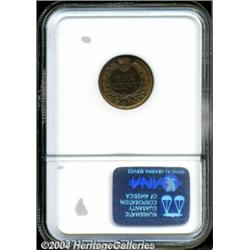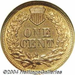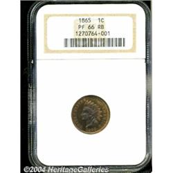 <B>1865<1C> PR66 Red and Brown NGC.</B></I> A flawlessly preserved specimen that features boldly struck devices. The fields are watery and flashy with smooth, glass-like surface texture, and are blazing gold with crimson streaks at the rims, fading to ruby in the centers. The central devices are lit by a pale turquoise cast, and a pool of deep amethyst and cerulean has collected in the left obverse field. Rare in this grade with NGC and PCGS having only certified 10 examples 66 in Red and Brown with none finer to date (7/04). <BR><BR><B>Important notice:</B> Heritage usually auctions material at the rate of 200-250 lots per hour. On some occasions eBay Live bid software or the Internet may not be able to keep up with the pace of the auction. We recommend placing a realistic absentee bid now as insurance to avoid disappointment. Occasionally the auctioneer may eliminate or reject an eBay Live bid, and the auctioneer may also reopen a lot after the close of the eBay live bidding (usually because we missed an audience bid), and may reject your bid even if it shows you as the winning bidder. By bidding via eBay Live, you agree that Heritage may award the lot to another bidder at its sole discretion under the circumstances described above or any other reasonable circumstances. Since eBay bids are not shown to us until we open the lot on the floor, we treat those bids just like floor bids. In most cases the floor responds before the eBay bid is presented to us, due to Internet lag time, so for consistency we have made it a policy that floor bids are always considered first over tie eBay live bids. Also please note that all Heritage lots purchased through eBay Live carry a 20% Buyer's Premium. Please make sure you read the Terms and Conditions before you bid. </span></font></tr></table></td></tr></table>