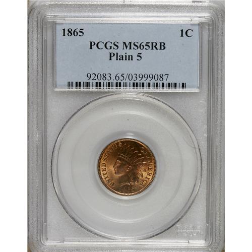 1865 1C Plain 5 MS65 Red and Brown PCGS. PCGS Popu