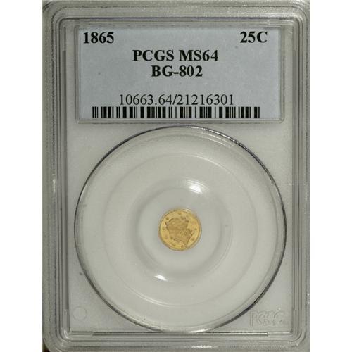 1865 25C Liberty Round 25 Cents, BG-802, Low R.5, MS64