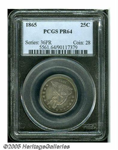 1865 25C PR64 PCGS. Intricately detailed with, gl