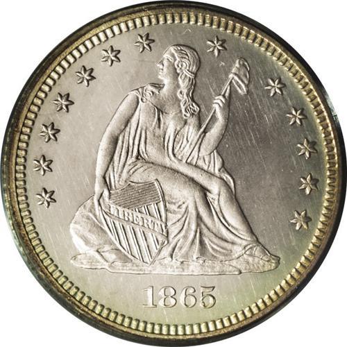 1865 25C PR65 Cameo PCGS. The last year of issue for t