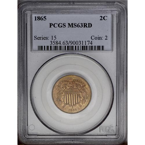 1865 2C MS63 Red PCGS. Fancy 5. A well struck and sati 1865[2C] MS63 Red PCGS.