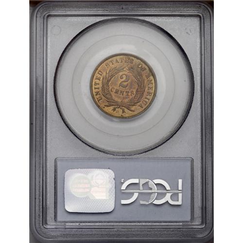 <B>1865<2C> MS63 Red PCGS.</B></I> Fancy 5. A well struck and satiny piece that displays dappled fire-red and olive shades. A few subtle gray flecks on the reverse do not appear to limit the grade.