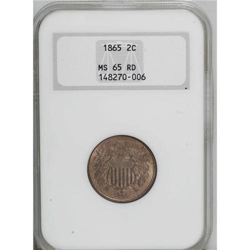 1865 2C MS65 Red NGC. This outstanding, boldly struck