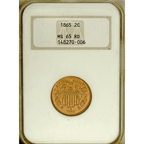 1865 2C MS65 Red NGC. This outstanding, boldly struck