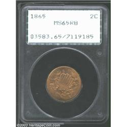 1865 2C MS65 Red and Brown PCGS. Luscious red and yellow-orange color, along with fully lustrous, ne