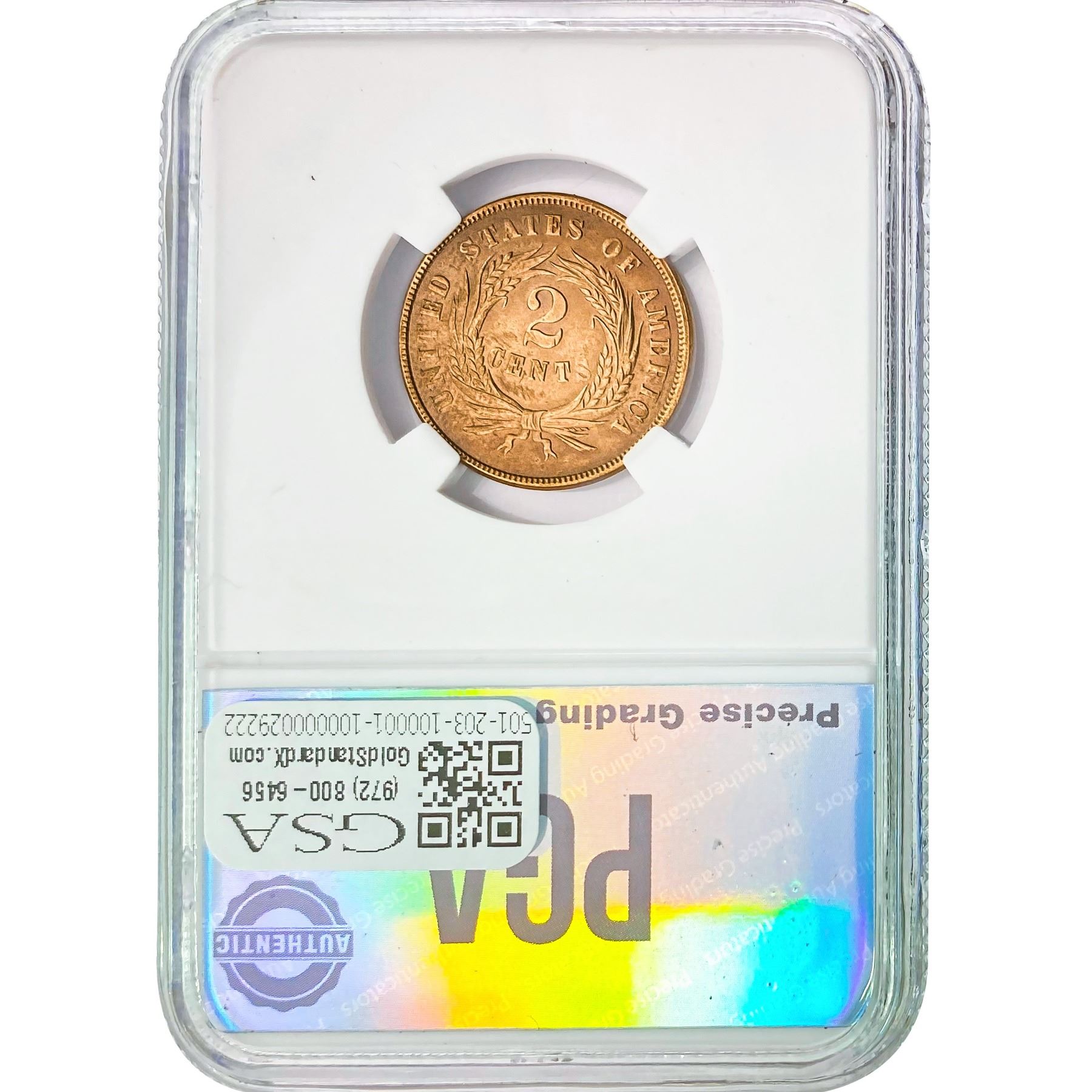 e. Coins sold referencing a third-party grading service are sold “AS IS” without any express or implied warranty, except for a guarantee by GSA that they are genuine. Removal or alteration of the holder, voids all of Bidder’s claims concerning that Product. Certain warranties may be available from the grading services and Bidders are referred to them for further details: Numismatic Guaranty Corporation (NGC), PO Box 4776, Sarasota, FL 34230, www.ngccoin.com/services/writtenguarantee.asp; Professional Coin Grading Services (PCGS), PO Box 9458, Newport Beach, CA 92658, www.pcgs.com/guarantee.html; ANACS, 6555 S. Kenton St., Ste. 303, Englewood, CO 80111; and Independent Coin Grading Co. (ICG), 7901 East Bellview, Ave., Suite 50, Englewood, CO 80111.