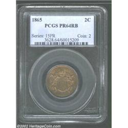 1865 2C PR64 Red and Brown PCGS. The variegated tan-gold patina is both original and attractive. A w