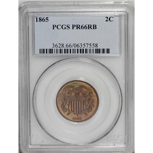1865 2C PR66 Red and Brown PCGS. The reflective surfac