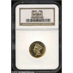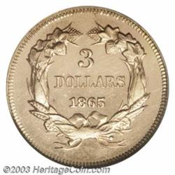 <table><tr><td><TABLE cellSpacing=0 cellPadding=0 width="100%" bgColor=#000000 border=0><TBODY> <TR><TD width="100%"><TABLE cellSpacing=1 cellPadding=3 width="100%" border=0><TBODY><TR><TD width="100%" bgColor=#79735c><FONT face=arial color=#ffffff size=3><B>Description</B> </FONT></TD></TR><TR><TD width="100%" bgColor=#ffffff><FONT face=arial size=2><B>1865 $3 MS66 <IMG height=10 alt="" src="../graphics/star.gif" width=10 border=0> NGC.</B></I> The elusive 1865 Three Dollar Gold has the lowest mintage figure of any issue in this challenging series struck prior to 1881, with only 1,140 business strikes produced. For that reason alone it has always been a popular coin with collectors, but unlike some later date, low mintage issues, the 1865 is genuinely rare in all grades. There are perhaps fewer than 65 pieces extant today, and most survivors are AU at best, with the population of Mint State pieces believed to be in the neighborhood of 20-25 coins. <BR>This extraordinary representative is certainly among the finest pieces in existence, being recognized as a business strike by the low, level date that is diagnostic of commercial strikings. Nearly pristine, glassy fields are noticeably striated on the obverse and, although no less reflective on the reverse, are lacking these rim-to-rim striations. The chalky features stand out in sharp contrast to the fields and appear to be fully executed in all areas save for a slight bluntness on the bow knot at the base of the wreath. One of the nicest and most appealing Three Dollar Gold pieces of any date that we have seen in recent memory, and the fact that it is dated 1865 places it among the most important gold coins offered this year. Population: 2 in 66, 1 finer (7/03). </FONT></TD></TR></TBODY></TABLE></TD></TR></TBODY></TABLE><BR><A name=PricesRealized></A><TABLE cellSpacing=0 cellPadding=0 width="100%" bgColor=#000000 border=0><TBODY><TR><TD width="100%"><TABLE cellSpacing=1 cellPadding=3 width="100%" border=0><TBODY><TR><TD width="100%" bgColor=#79735c><A name=PR><FONT face=arial color=#ffffff size=3><B>Previous Prices from Heritage Auctions</B> </FONT></A></TD></TR><TR><TD bgColor=#f6f6ed>No Prior Data Recorded </TD></TR><TR><TD bgColor=#ffffff><FONT face=arial size=1 ?>PLEASE NOTE: All prices realized reflect the final hammer price PLUS the buyer's premium in auctions that charge a buyer's premium. Each item has a notation at the top of the listing indicating whether that lot included a buyer's premium. Example: A item that sells with a final hammer price of $100 and a 20% buyer's premium will display with a price realized of $120. All information listed is intended to be as accurate as possible, but errors are possible. Please use this guide carefully and inform us of any inaccuracies. </FONT></TD></TR></TBODY></TABLE></TD></TR></TBODY></TABLE><BR><TABLE cellSpacing=0 cellPadding=0 width="100%" bgColor=#000000 border=0><TBODY><TR><TD width="100%"><TABLE cellSpacing=1 cellPadding=3 width="100%" border=0><TBODY><TR><TD width="100%" bgColor=#79735c colSpan=6><FONT face=arial color=#ffffff size=3><B>Price Guide*</B> </FONT></TD></TR><TR bgColor=#f6f6ed><TD align=middle><B>Grade</B> </TD><TD align=middle><B>Coin World<BR>(Trends)</B> </TD><TD align=middle><B>Numismedia<BR>Retail</B> </TD><TD align=middle><B>Numismedia<BR>Wholesale</B> </TD><TD align=middle><B>Coin<BR>Universe</B> </TD><TD align=middle><B>Heritage<BR>Value Index</B> </TD></TR><TR bgColor=#ffffff><TD align=middle>65</TD><TD align=right>$40,000.00</TD><TD align=right>---</TD><TD align=right>$26,500.00</TD><TD align=right>$46,000.00</TD><TD align=right>$29,816.67</TD></TR><TR style="FONT-WEIGHT: bold" bgColor=#cccfdd><TD align=middle>66</TD><TD align=right>---</TD><TD align=right>---</TD><TD align=right>---</TD><TD align=right>---</TD><TD align=right>$34,425.00</TD></TR><TR bgColor=#ffffff><TD align=middle>67</TD><TD align=right>---</TD><TD align=right>---</TD><TD align=right>---</TD><TD align=right>---</TD><TD align=right>$39,600.00</TD></TR><TR bgColor=#ffffff><TD colSpan=6><FONT size=1>*All information listed is intended to be as accurate as possible, but errors are possible. No item may be returned or refused based on this information which is provided as a service to our customers. You should contact each pricing source directly to determine the accuracy of this information. </FONT></TD></TR></TBODY></TABLE></TD></TR></TBODY></TABLE><BR><TABLE cellSpacing=0 cellPadding=0 width="100%" bgColor=#000000 border=0><TBODY><TR><TD width="100%"><TABLE cellSpacing=1 cellPadding=3 width="100%" border=0><TBODY><TR><TD width="100%" bgColor=#79735c><FONT face=arial color=#ffffff size=3><B>Population Guide</B> </FONT></TD></TR><TR bgColor=#ffffff><TD align=middle><!-- Begin Output of Population Grid--><TABLE cellSpacing=0 cellPadding=0 width="100%" border=0><TBODY><TR><TD vAlign=center><TABLE cellSpacing=0 width="100%" border=1 cellsadding="3"><TBODY><TR><TD vAlign=center><TABLE cellSpacing=0 cellPadding=3 width="100%" border=1><TBODY><TR><TD vAlign=center align=middle bgColor=#f0f1e8 colSpan=2 <CENTER><FONT face=Arial size=2><B>PCGS Pop </B></FONT><CENTER></CENTER></TD><TD vAlign=center align=middle bgColor=#f0f1e8 colSpan=2><CENTER><FONT face=Arial size=2><B>NGC Pop</B></CENTER></FONT></TD></TR><TR><TD vAlign=center><FONT face=Arial size=2>(66)</FONT> </TD><TD vAlign=center align=right><FONT face=Arial size=2>2</FONT> </TD><TD vAlign=center><FONT face=Arial size=2>(66)</FONT> </TD><TD vAlign=center align=right><FONT face=Arial size=2>2</FONT> </TD></TR><TR><TD vAlign=center><FONT face=Arial size=2>(>66)</FONT> </TD><TD vAlign=center align=right><FONT face=Arial size=2>0</FONT> </TD><TD vAlign=center><FONT face=Arial size=2>(>66)</FONT> </TD><TD vAlign=center align=right><FONT face=Arial size=2>1</FONT> </TD></TR></TBODY></TABLE></TD></TR></TBODY></TABLE></TD></TR></TBODY></TABLE><!-- End Output of Population Grid--></TD></TR></TBODY></TABLE></TD></TR></TBODY></TABLE><BR><TABLE cellSpacing