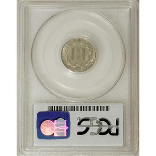 <B>1865 3CN MS64 PCGS.</B></I> PCGS Population (404/147). NGC Census: (471/147). Mintage: 11,382,000. Numismedia Wsl. Price for NGC/PCGS coin in MS64: $200. (#3731)<BR><BR><B>Coin Engraver:</B> James B. Longacre<BR><BR><b>Shipping:</b> Coins & Currency (<a target="_blank" href="http://www.heritageauctions.com/common/shipping.php">view shipping information</a>\)