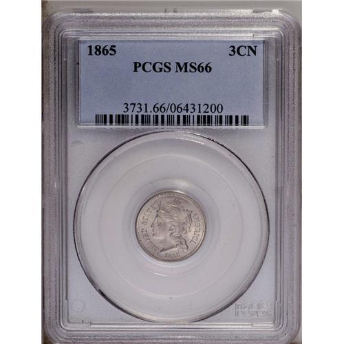 1865 3CN MS66 PCGS. Nickel-gray surfaces display frost 1865[3CN] MS66 PCGS.