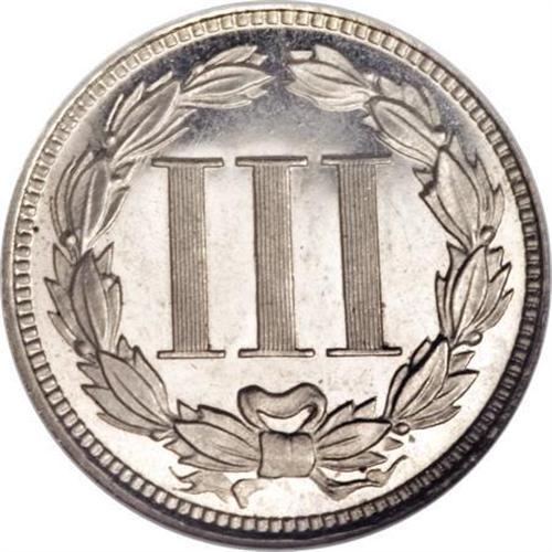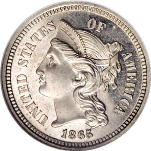 <B>1865 3CN PR65 NGC. CAC.</B></I> Breen-2412. Doubled Date West. The first year of issue three cent nickel is one of the most common dates in business strike, but the rarest in proof. This untoned Gem has pristine surfaces with a few minor spots that are consistent with the grade. Census: 59 in 65, 15 finer (1/08).<BR><I>From The Southwest Collection.</B></I><BR><BR><B>Coin Engraver:</B> James B. Longacre<BR><BR><b>Shipping:</b> Coins & Currency (<a target="_blank" href="http://www.heritageauctions.com/common/shipping.php">view shipping information</a>)